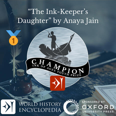 1st place in the World History Encyclopedia x Oxford University Press "Ink of Ages" Short Story Contest- a prestigious international short story competition- winning out of ~700 global entries. Recognized for original fiction writing competing against international submissions. Judged and praised by history professors from top-tier universities.
